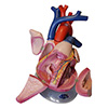 示外形及出入心脏的大血管,心房心室可打开示内部结构